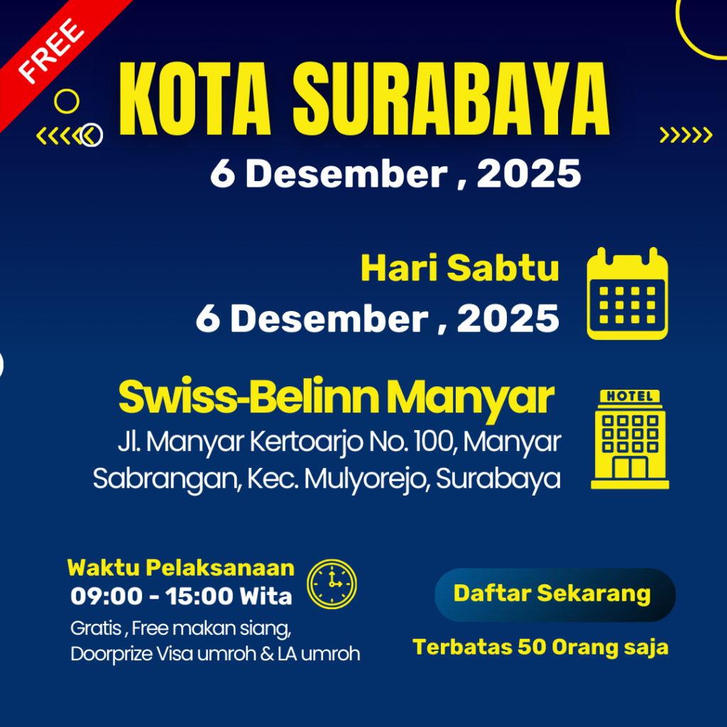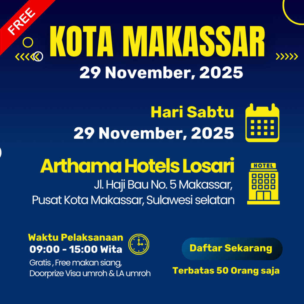 Atau mungkin kamu bisa Ikuti Acara seminar bisnis umroh dan Edukasi umroh mandiri di kotamu untuk bertanya langsung